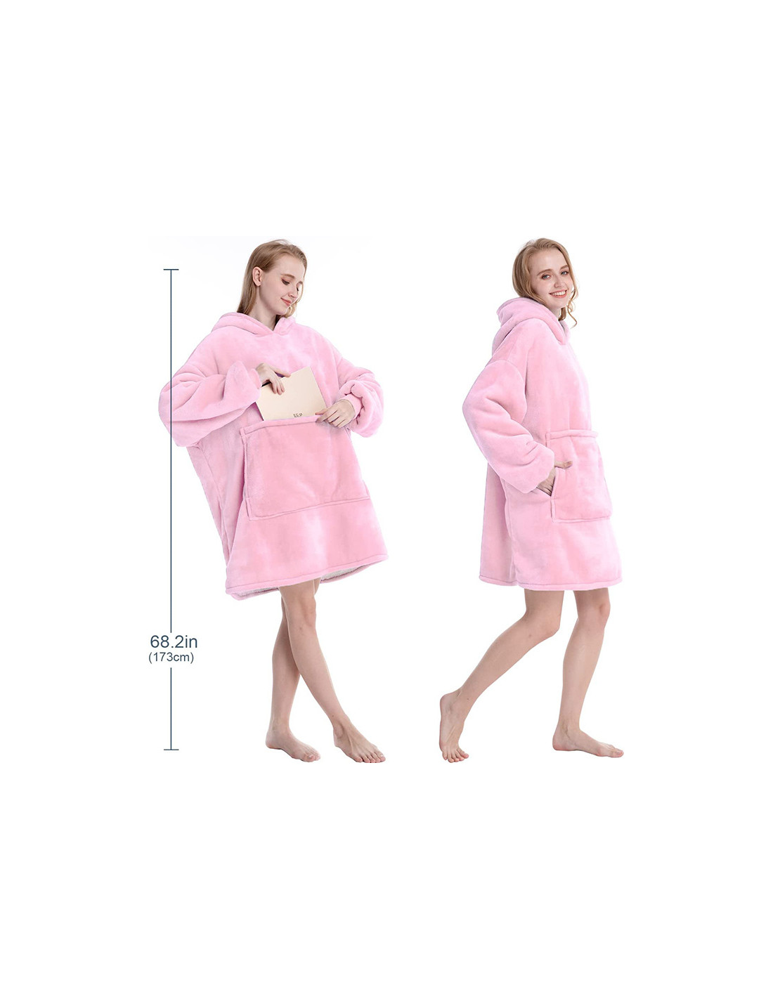 Ele cobre perfeitamente o seu corpo. O cobertor com capuz tem um bolso grande na parte frontal, para ser conveniente aquecer as mãos ou guardar objetos.