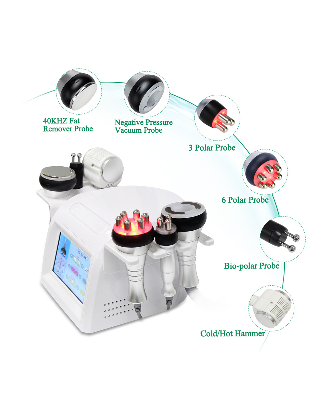 Com a cabeça com forte onda sonora de 40KHZ pode ser emitida ao corpo humano para influenciar as células de gordura ferozmente, causando movimento entre as células de gordura. Isto pode causar consumo efetivo de calorias e de umidade nas células de gordura e reduzir o tamanho das células de gordura. Dá-se uma implosão das células adiposas(são eliminadas) as ondas de som provoca vibração causando impacto feroz das células de gordura para reduzir a quantidade de células de gordura e, assim, atingir os efeitos da remoção de gordura.