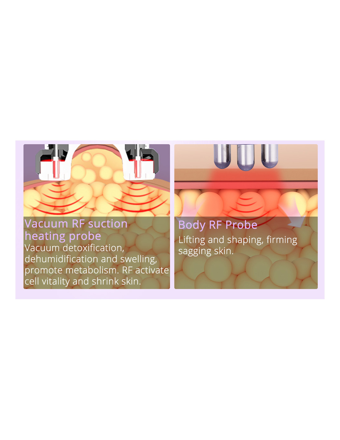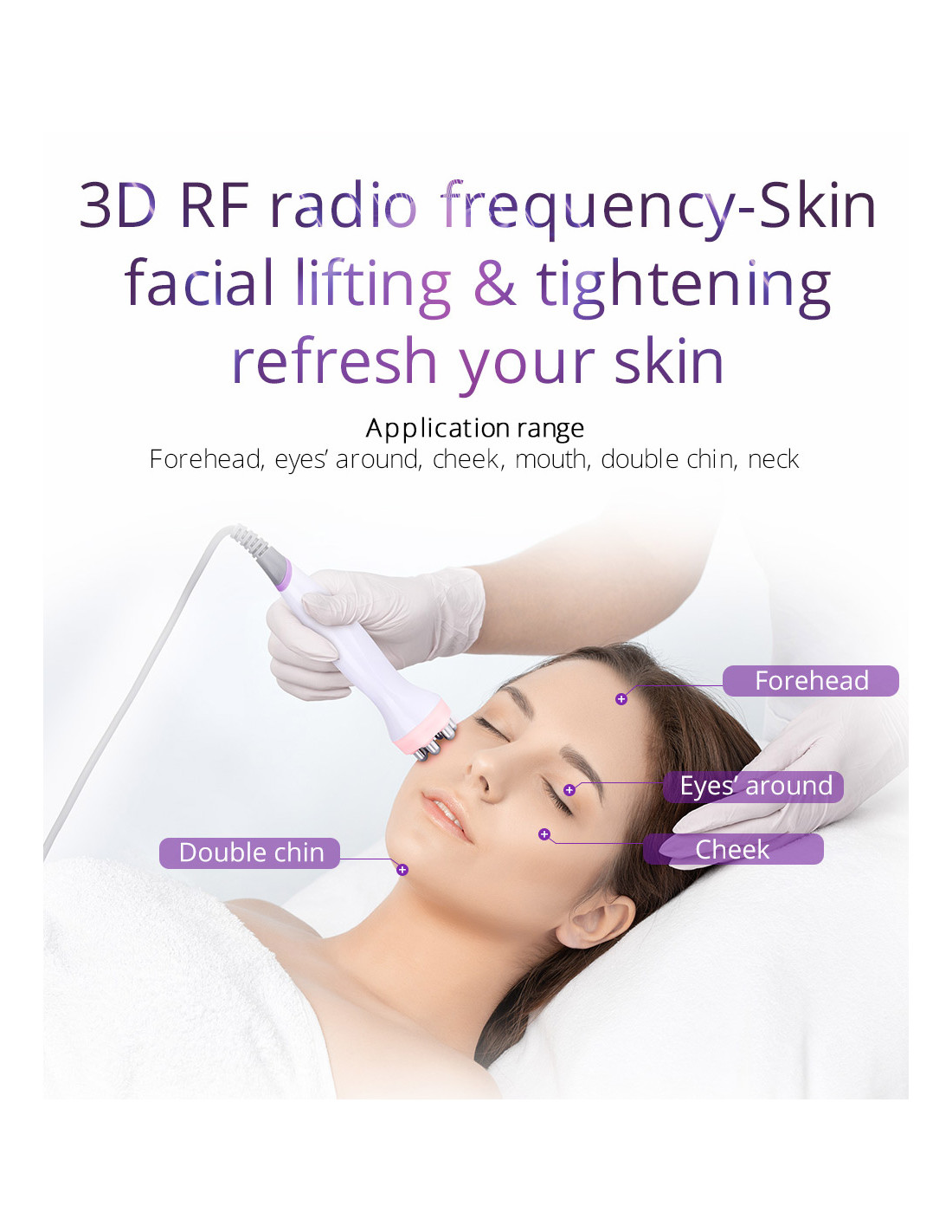 A radiofrequência tem as funções de lifting facial, modelagem corporal, firmeza da pele, remoção de rugas e dissolução de gordura. O tratamento é simples e o efeito é notável. Pode atuar na pele e na camada de gordura subcutânea para aumentar a espessura e a densidade da camada derme da pele, preencher rugas, eliminar cicatrizes, restaurar a elasticidade e o brilho da pele e tornar a pele mais lisa.