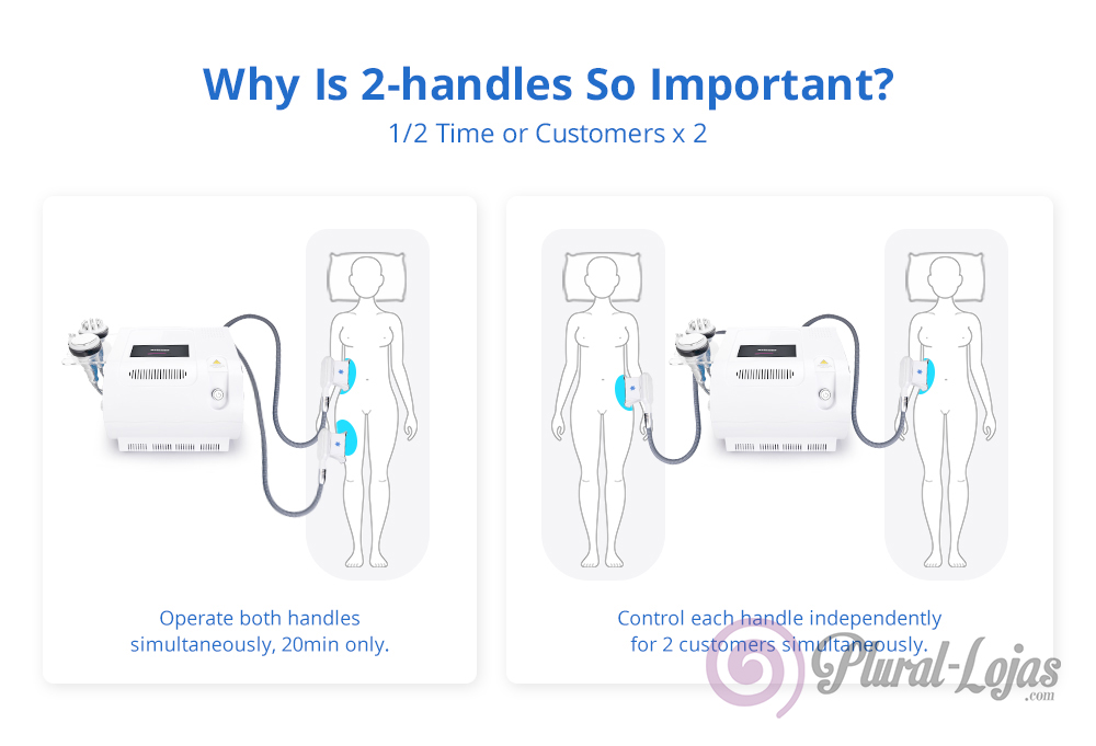 Esta maquina tem 2 Manipulos de Criolipólise – Pode usar os dois Manipulos em Simultaneo reduzindo assim o seu tempo .