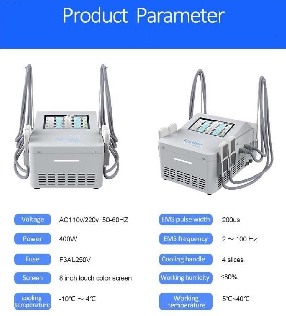 MAQUINA DE CRIOLIPOLISE DE PLACAS + EMS - COM 4 PLACAS DUPLAS ATÉ -10 + EMS ELETROESTIMULAÇÃO ATÉ 100HZ