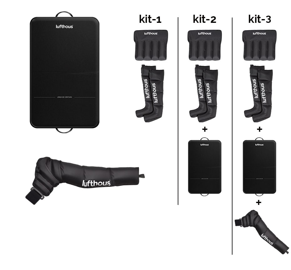 Kit 3 - Maquina de Pressoterapia + Perneiras + Faixa de Abdomen + Braço + Tubo Duplo + Cabo Simples + Acessório Tapete Vertebral  + Instruções
