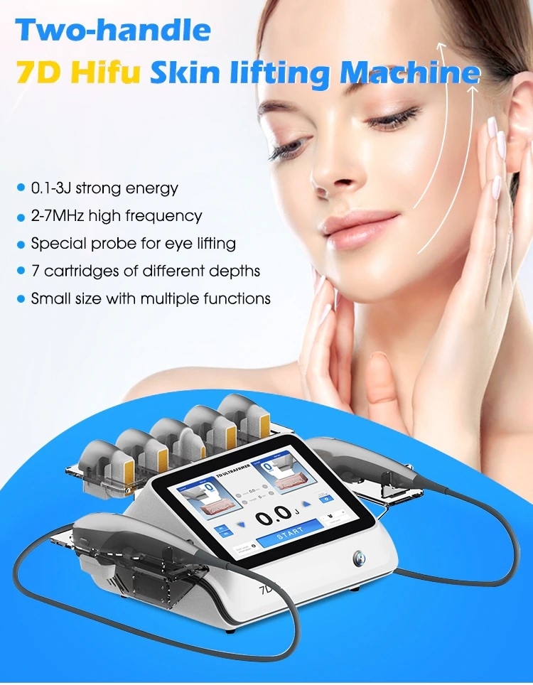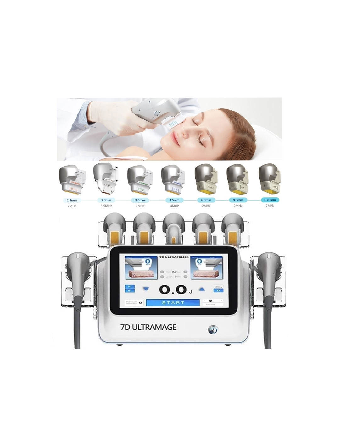A máquina 7D HIFU é a mais recente tecnologia para lifting facial, remoção de rugas e modelagem corporal. A tecnologia é desenvolvida pela primeira vez como um produto chamado 7D HIFU, usa a tecnologia MMFU (micro e micro ultrassom focalizado), o transdutor gera calor na área de foco.