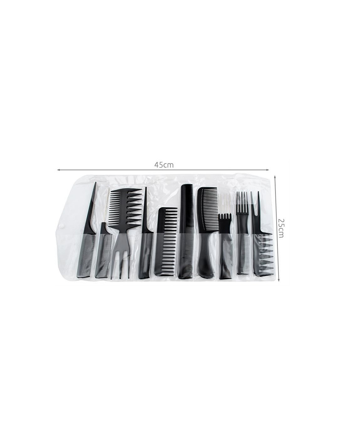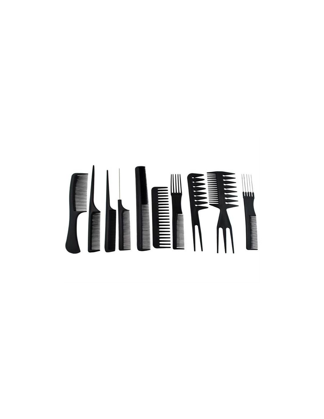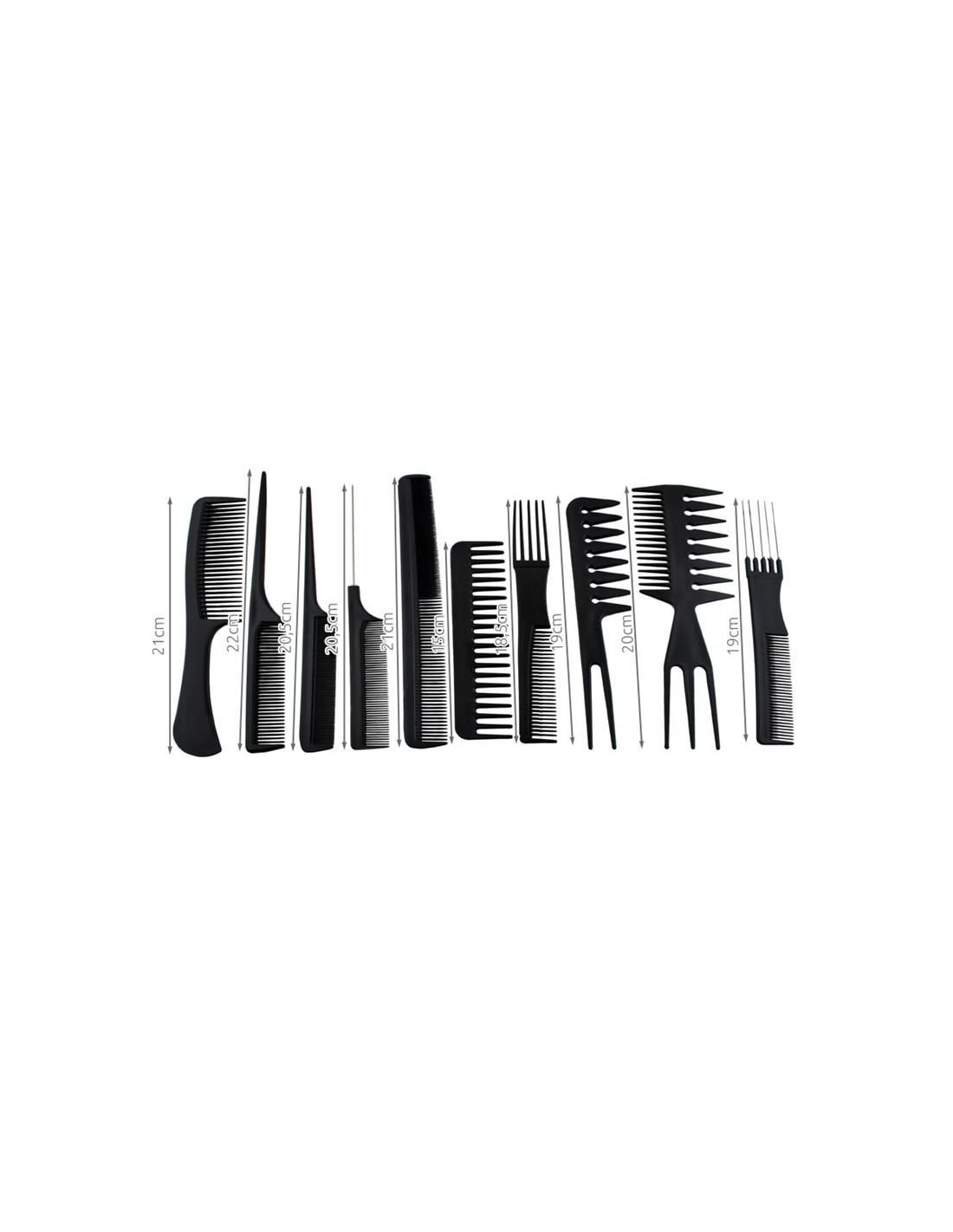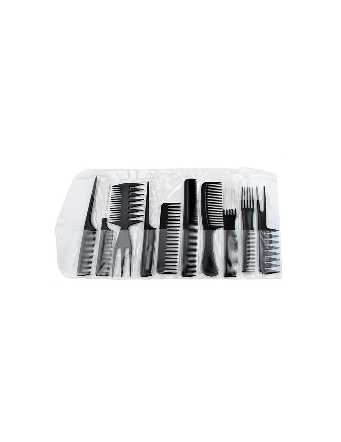 Os pentes profissionais para cabeleireiro foram montados num conjunto bem pensado de 10 peças. O conjunto apresenta tudo o que precisamos para um estilo de cabelo diário em um só lugar. Podemos encontrar um pente com cabo, com espigão de plástico e metal, pente para cortar cabelo, pente modelador, pente de luzes baixas, pente traseiro e tudo que você precisa para criar muitos penteados diferentes e extraordinários.