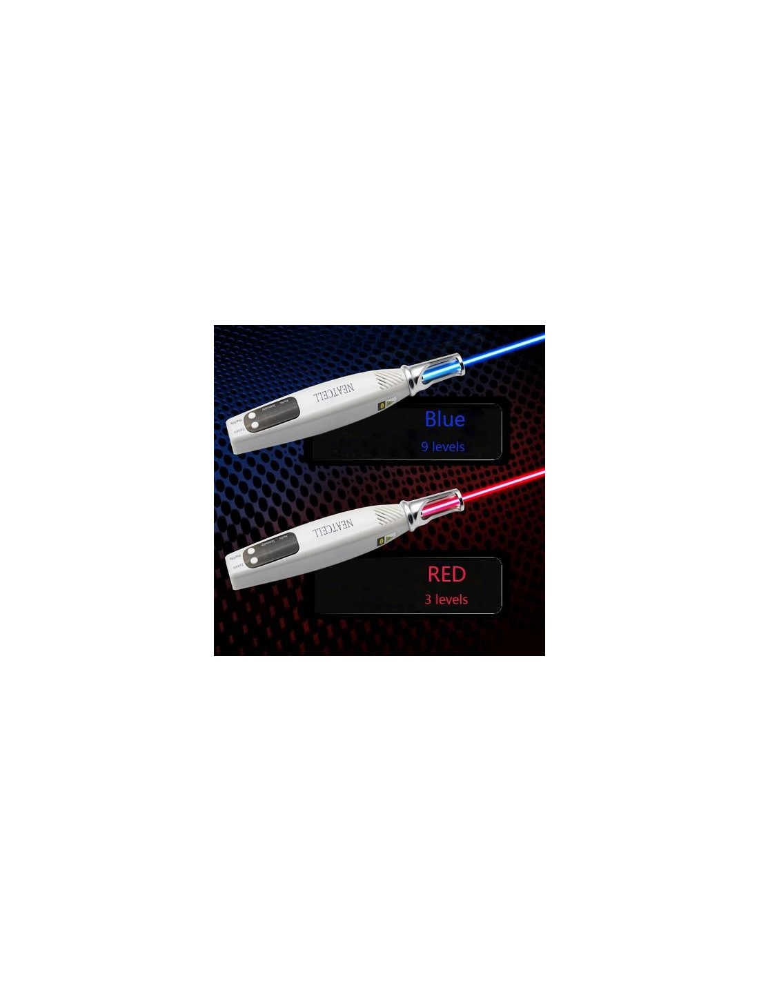 A caneta laser vermelha tem 3 níveis de freqüência, sua área de flash é menor. É adequado para operações sutis. Apenas os poderes são diferentes, os resultados são os mesmos. Ambos são para a remoção de tatuagem, verrugas, speckle e ect.